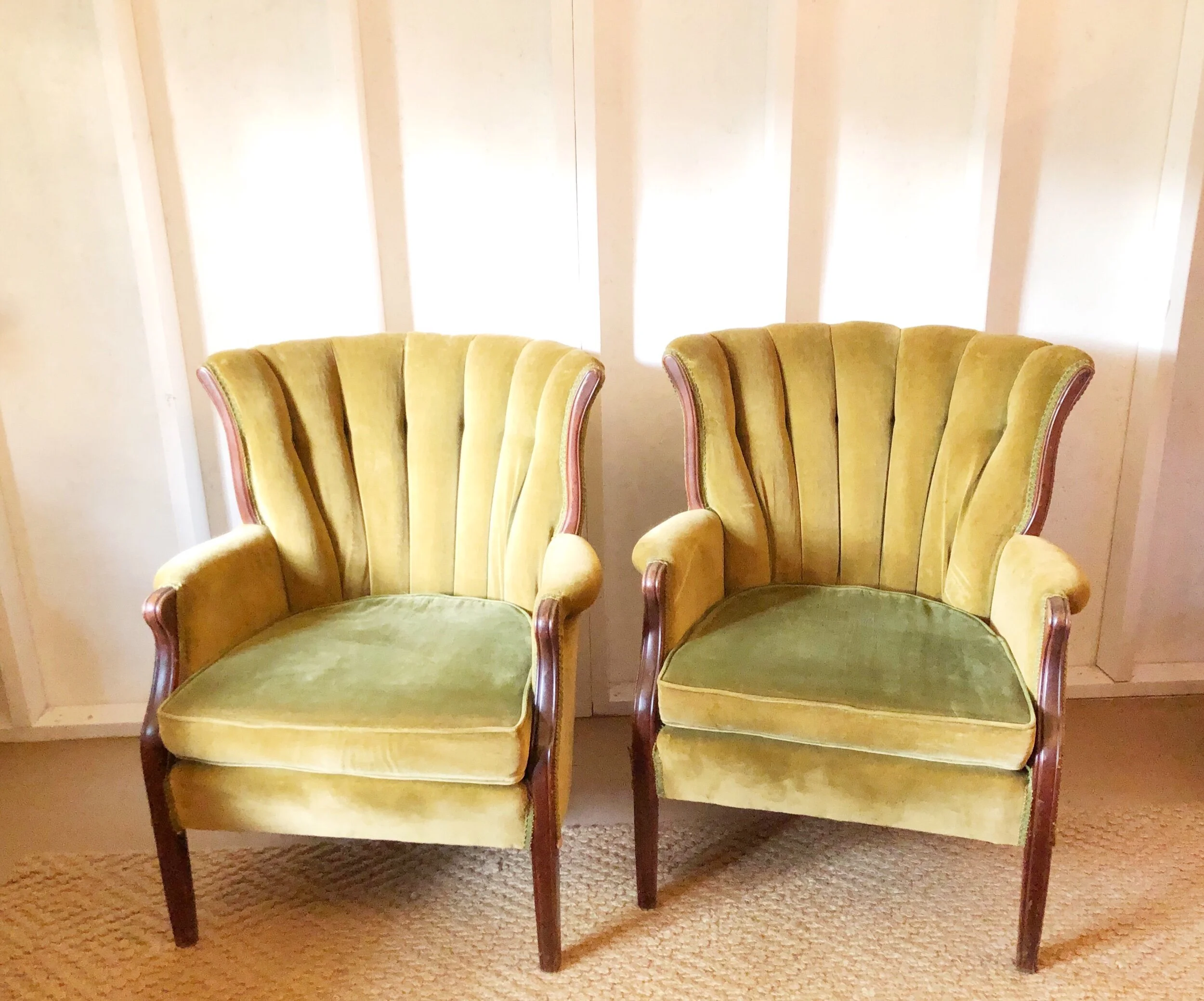 Pair Of Vintage Yellow Velvet Club Lounge Chairs At 1stdibs